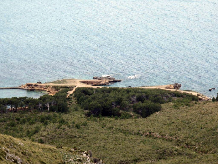 A partir del Coll del Moro, el camí es converteix en sendera que ens portarà a la Cala.